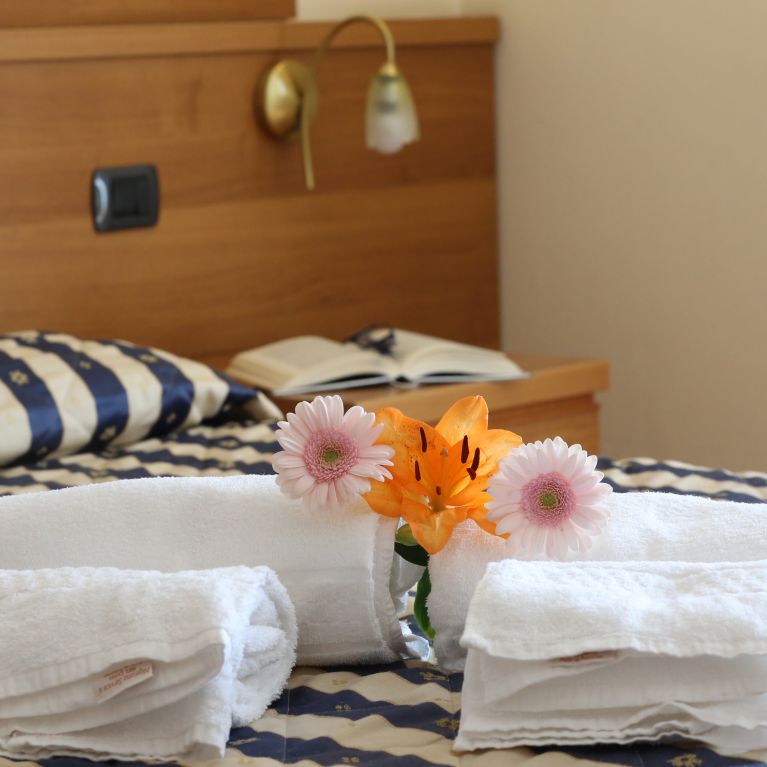 Camera mq. 18, dotata di armadio / guardaroba, scrivania, riscaldamento, TV LED FULL HD 24”, connessione Wi-Fi gratuita, bagno privato di design con Box docce, asciugacapelli, vanity set e servizio di pulizia giornaliero. Le camere ai piani dispongono di aria condizionata e un confortevole parquet